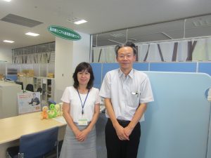 センター職員の小林悦子さんと県労働政策課の大西典宏さん。
