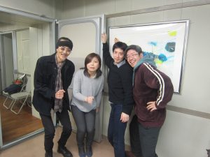 (左から)賢三役の佐々木さん、春枝役の吉田さん、勇気役の澤田さん、大家役の田端さん。