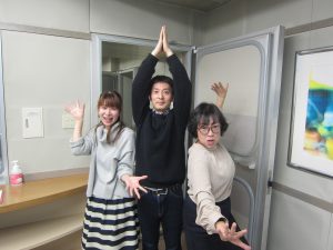 (左から)Nの松田さん、新崎役の澤田さん、浅井社長役の三上さん。何のポーズ?!