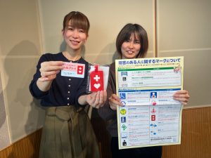 どちらも裏面に氏名や緊急連絡先、お願いしたいことなどが記載できるようになっています。このマークを見かけたら、思いやりのある行動や、困っている様子であれば、声をかけるなどの手助けをお願いします。