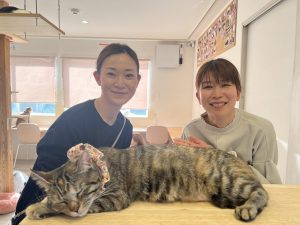 またしあわせにゃん家は、譲渡型。里親さんにお渡しする活動も行っています。里親さんについては、3回以上はお店に来ていただき、渡辺さんがお宅にもお邪魔して、家族全員にお会いするとのこと。