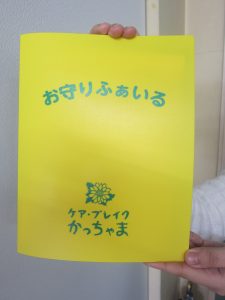 ケアブレイクかっちゃまが制作した「お守りふぁいる」試作品。